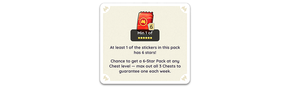 Max all three Chests? You’re guaranteed at least one 6★ Sticker Pack—with a shot at three!